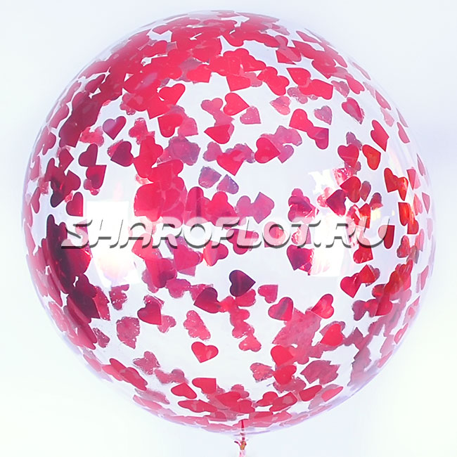 Большой шар с красным конфетти сердце 70см