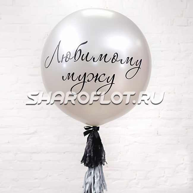 Большой шар с тассел гирляндой Серебро с надписью