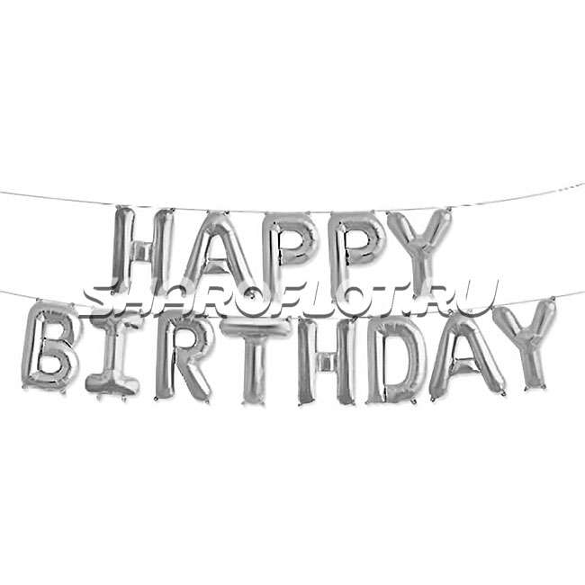 Шар Надпись Happy Birthday серебро