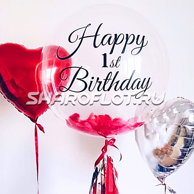 • 1шт. - Шар Bubbles 50см с наполнением и надписью