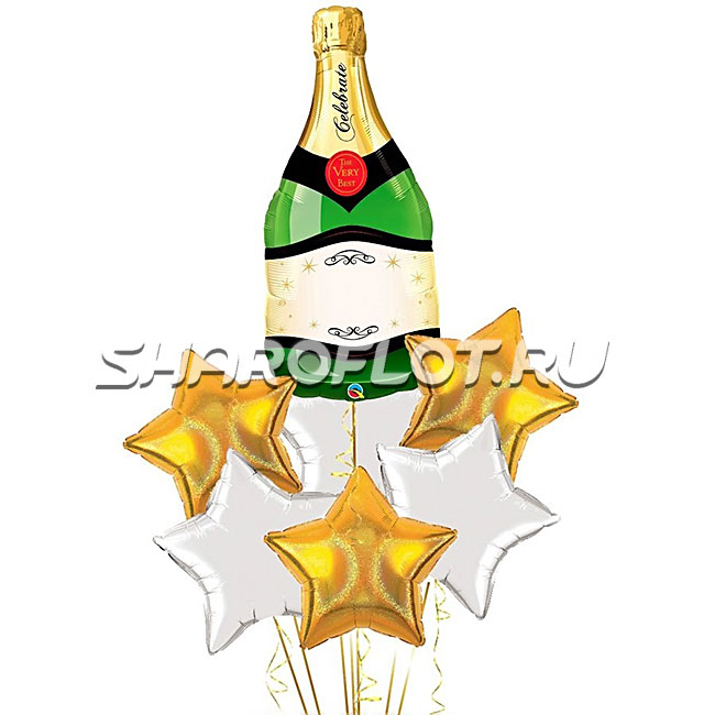 Состав: Шар Бутылка шаманского, 5 звезд 45см<br /><br /><br />