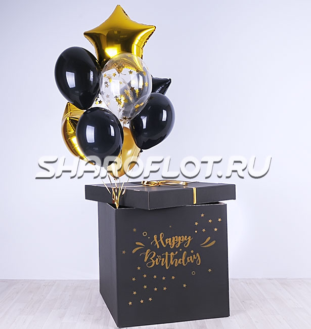 Черная коробка с шариками Happy Birthday
