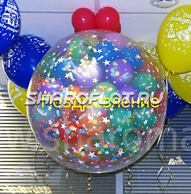 Шар-сюрприз с шариками, конфетти и надписью 70см