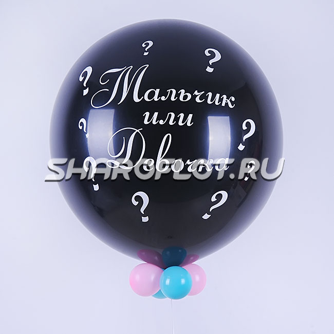 Шар внутри наполнен шариками с воздухом 10см  и конфетти в цвет пола ребенка.<br />