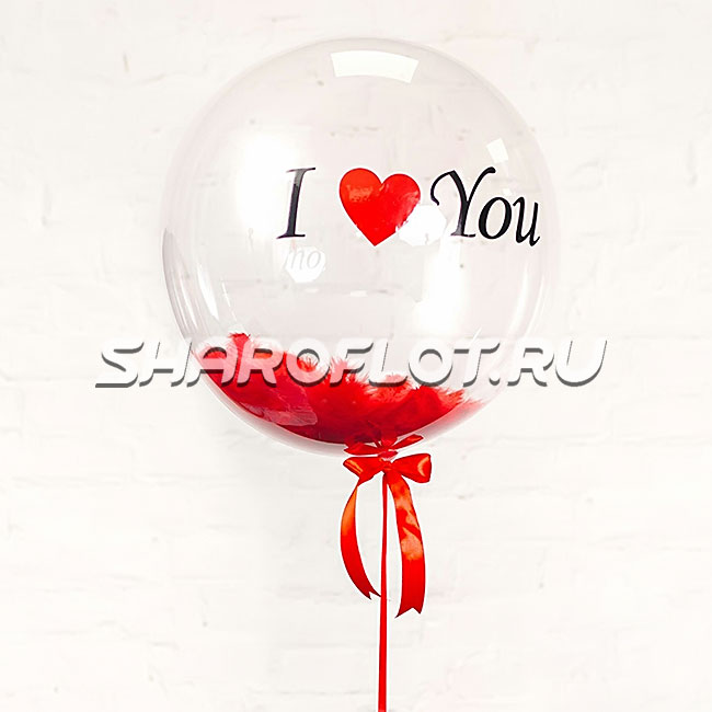 Шар - сфера с перьями и надписью, 60 см.