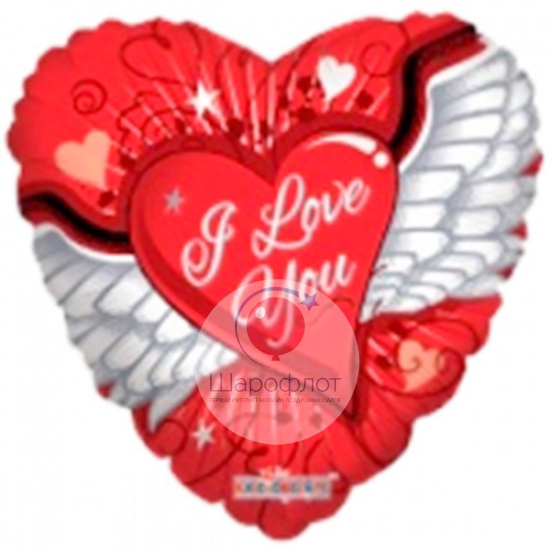Воздушный шарик из фольги Сердце Любовь Крылья