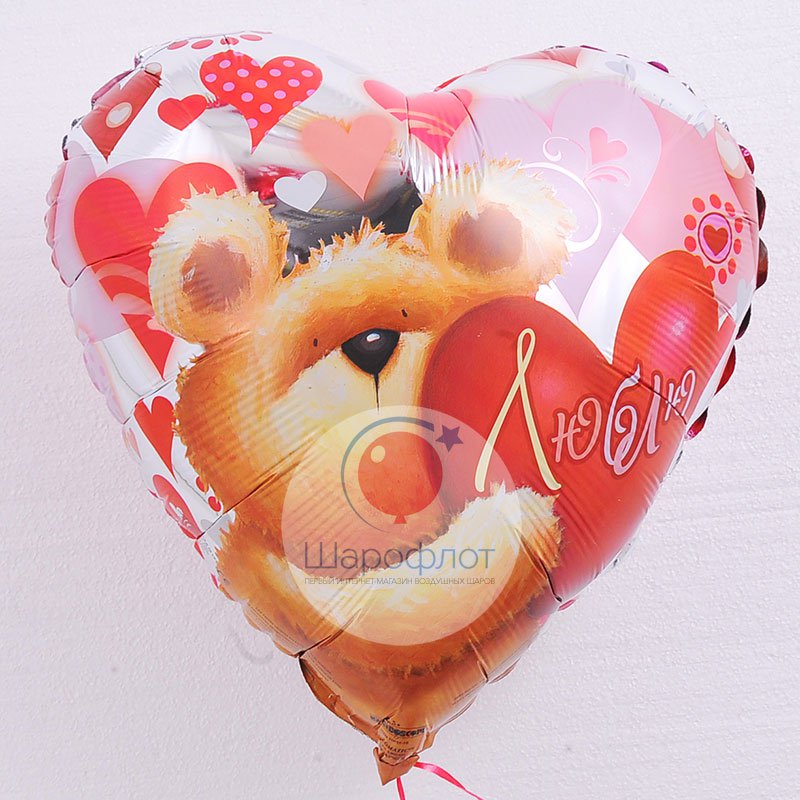 Воздушный шарик из фольги Сердце Любовь Медвежонок