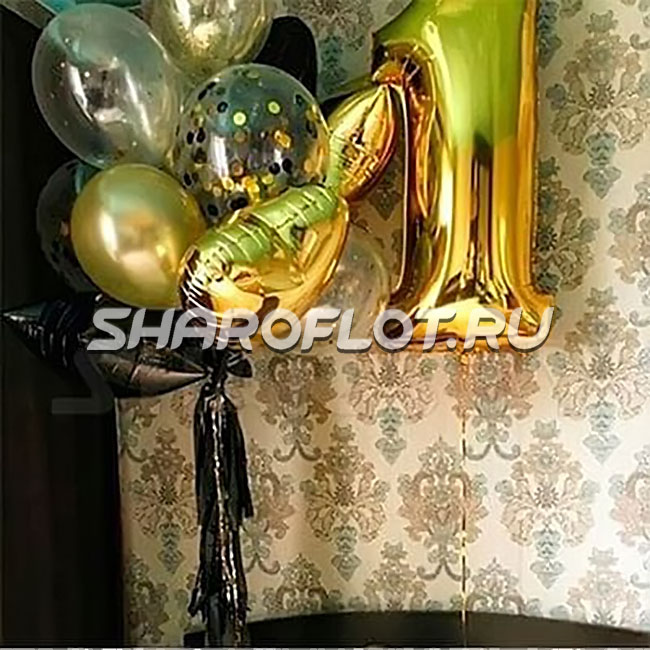 1 любая золотая фольгированная цифра с гелием, 102 см;