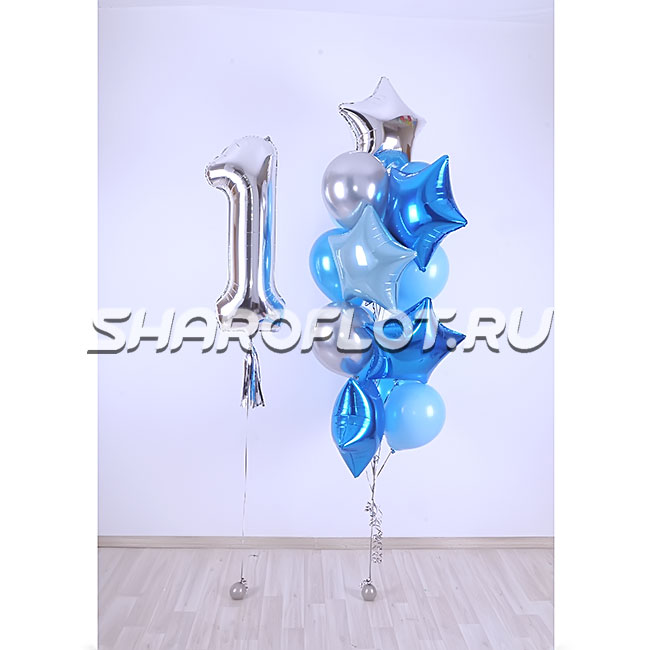 Шары с цифрой и фонтаном мальчику на 1 годик Классика