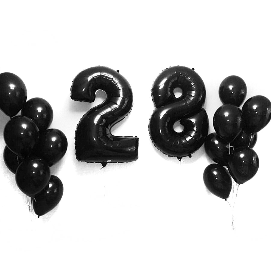 Состав букета: 2 черные фольгированные цифры, 15 черных шаров 30см<br /><br />
