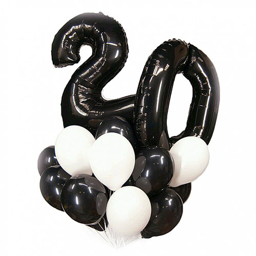 Классический букет на день рождения с цифрами в черно-белом цвете.