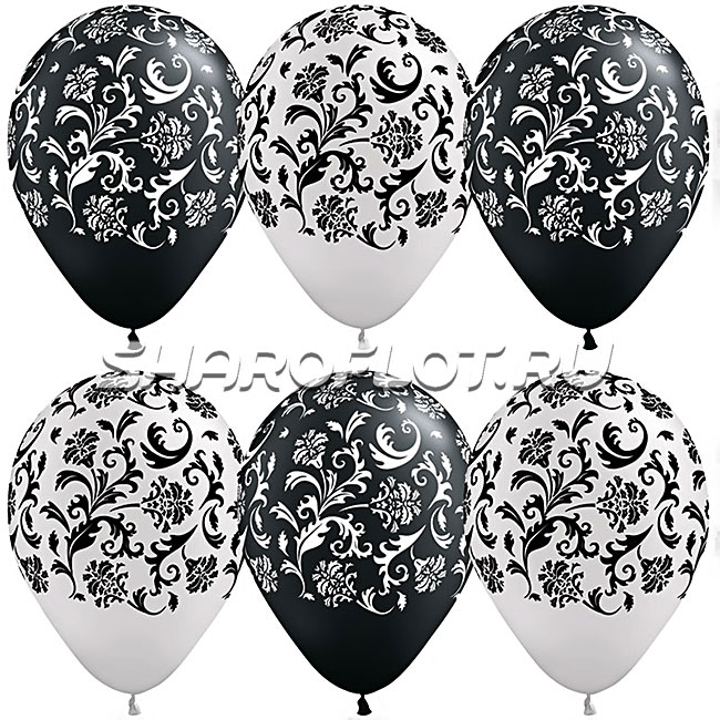 Шары Белые Черные (узор Барокко), 30см