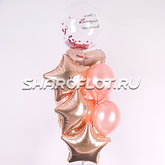 Фонтан Розовое золото с прозрачным шаром и надписью