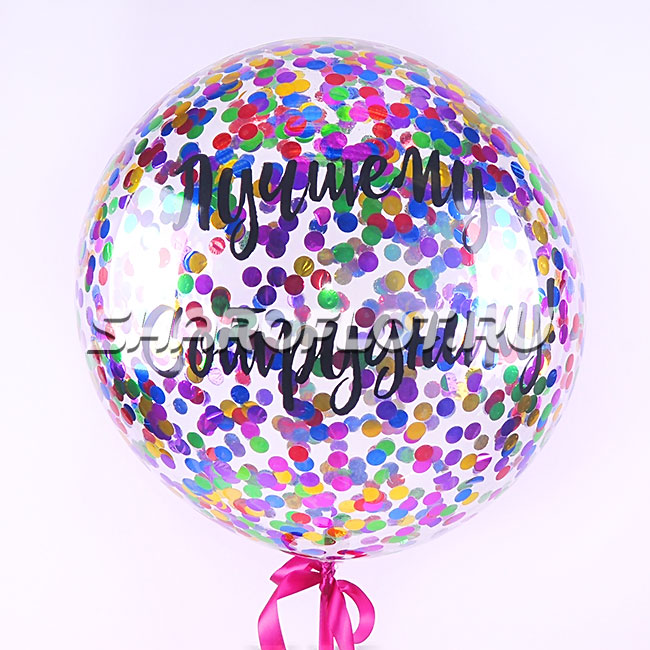 Большой шар с цветным конфетти и надписью 70см