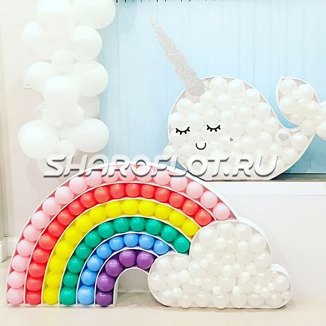Радуга с тучкой из шаров в технике "Аэромозаика"