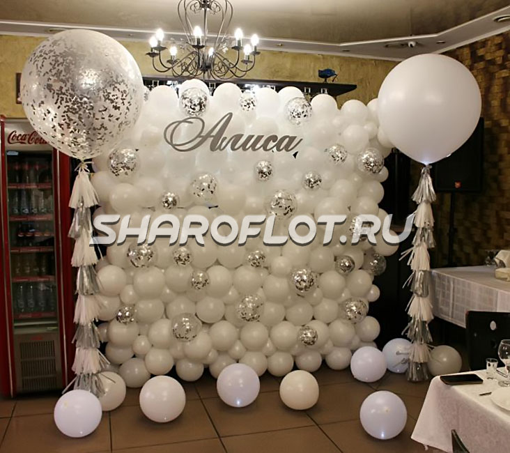 В стоимость входит фотозона без каркаса 2х2м, большие шары с гелием. Надпись в стоимость не входит и может быть изготовлена отдельно.