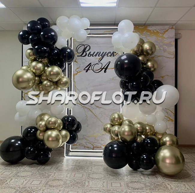 Фотозона на выпускной в белозолотых цветах