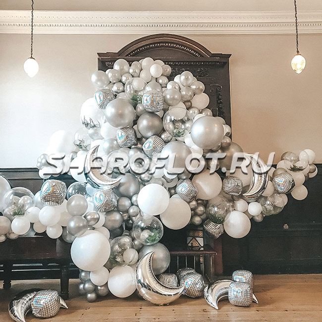 В стоимость входит оформление шарами по фотографии. Форма оформлению может быть изменена в зависисмости от интерьера.