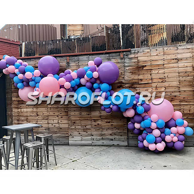 Стоимость указана только за гирлянду из воздушных шаров как на фото, с учетом простого монтажа в рабочее время. Дополнительный декор гирлянды согласовывается отдельно с клиентом.
