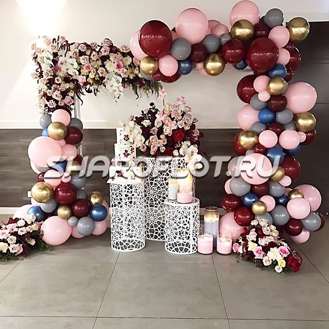 Стоимость указана только за гирлянду из воздушных шаров как на фото, с учетом простого монтажа в рабочее время. Дополнительный декор гирлянды согласовывается отдельно с клиентом.