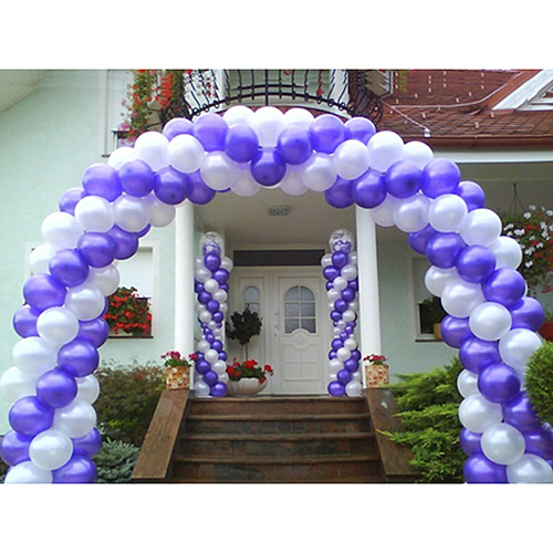 Бело-сиреневая гирлянда из шаров для украшения фасада.