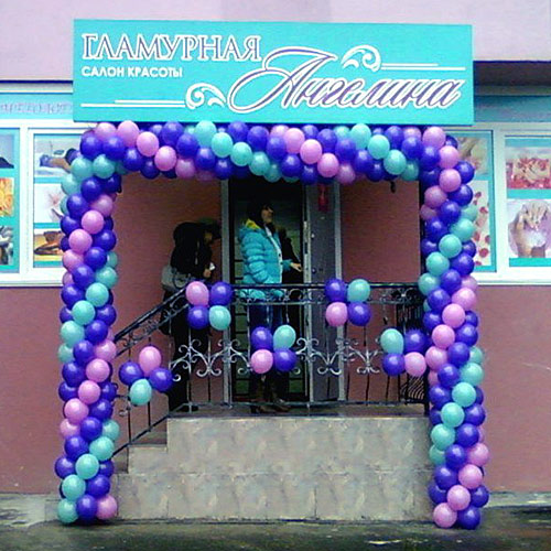 Фиолетово-голубая-лиловая гирлянда из шаров для украшения фасада.