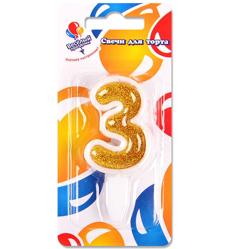 Свеча для торта Золото 3 (5см)