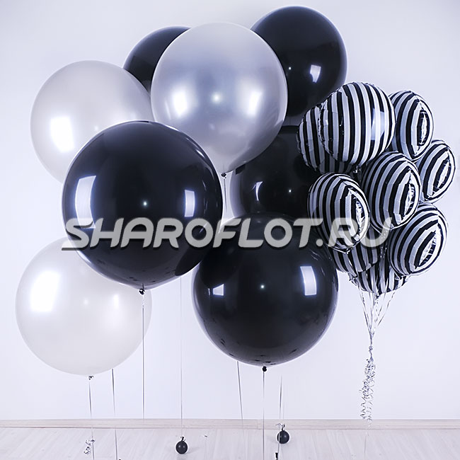 Зебровый фонтан с черными и серебрянными шарами