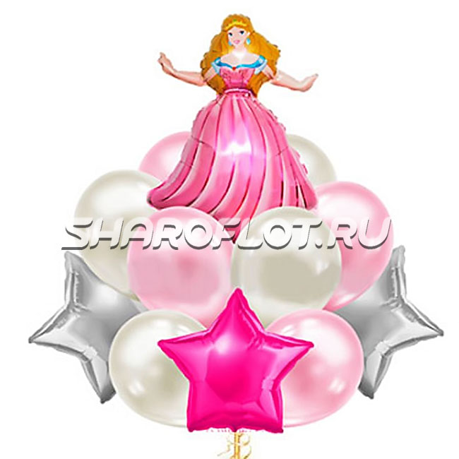 Состав букета: Шар Принцесса, три звезды, 25 шариков жемчужного и розового цветов.<br /><br /><br />