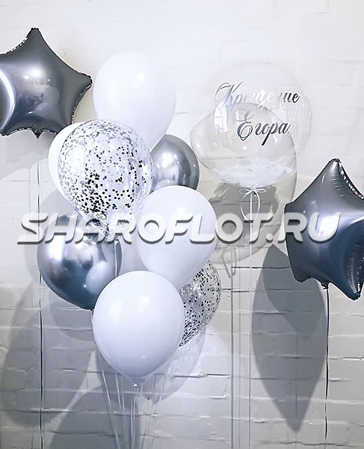 • 4шт. - Шар Bubbles 50см с наполнением и надписью