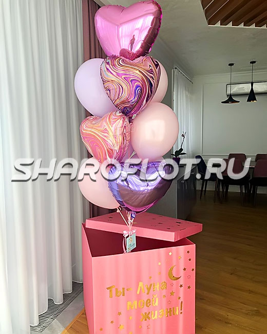 Коробка-поздравление с шарами Фламинго