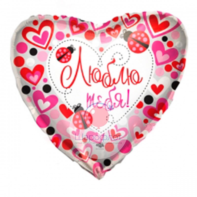 Воздушный шарик из фольги Сердце Любовь Божьи коровки