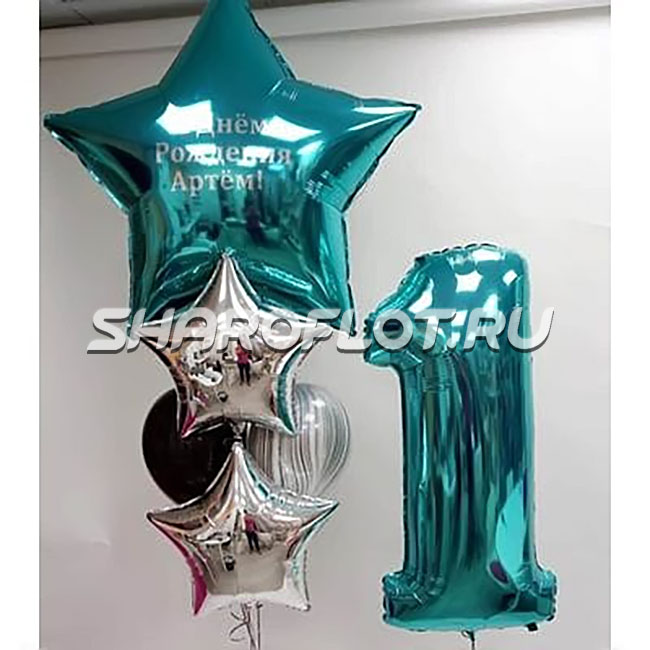 1 большая фольгированная звезда, 80 см. С ЛЮБОЙ надписью;