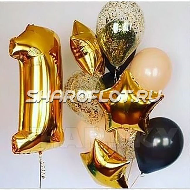 1 любая золотая фольгированная цифра с гелием, 102 см;