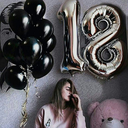 Классическая композиция из шаров с цифрами в черно-серебряном цвете.