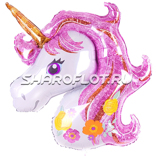 Шар Единорог Розовый голова 75см