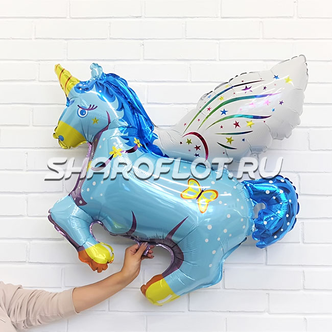 Шар Единорог голубой 70см