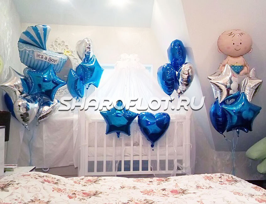 Украшение шарами на выписку мальчика из роддома